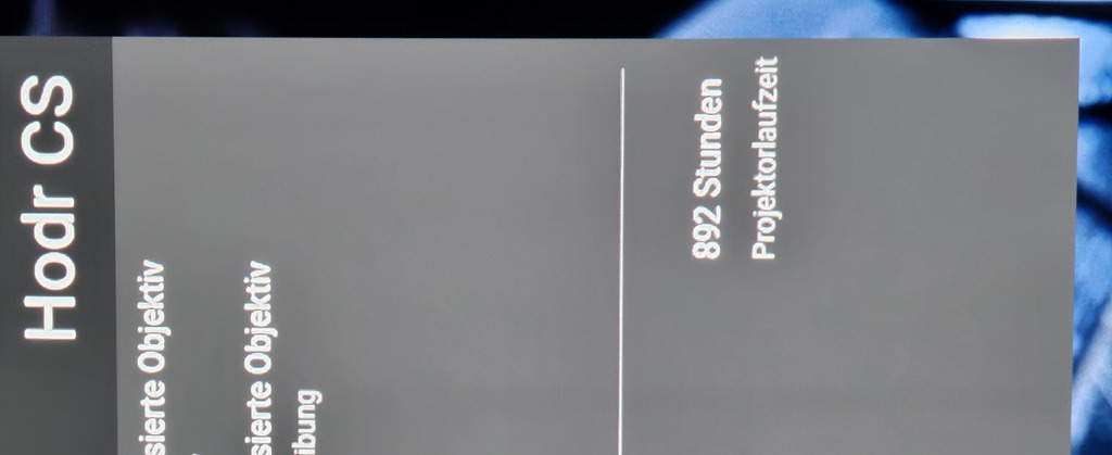 Der Projektor hat eine Laufzeit von 892 Stunden, die Garantie läuft bis zum 07.02.2027, und eine Garantie Erweiterung ist jederzeit möglich.