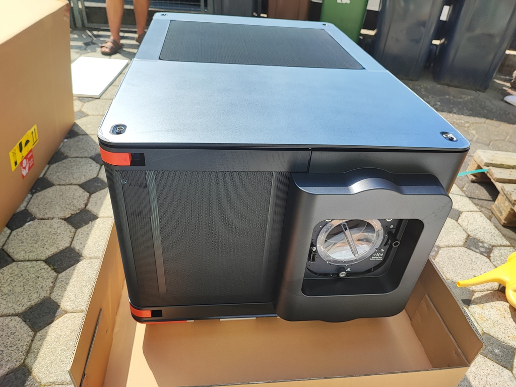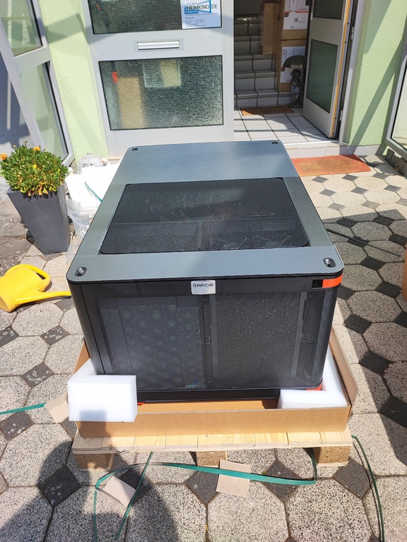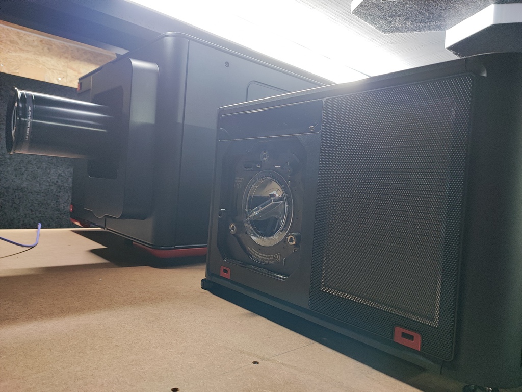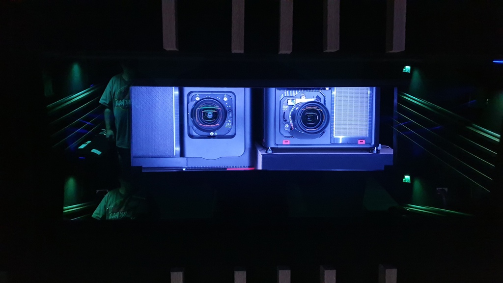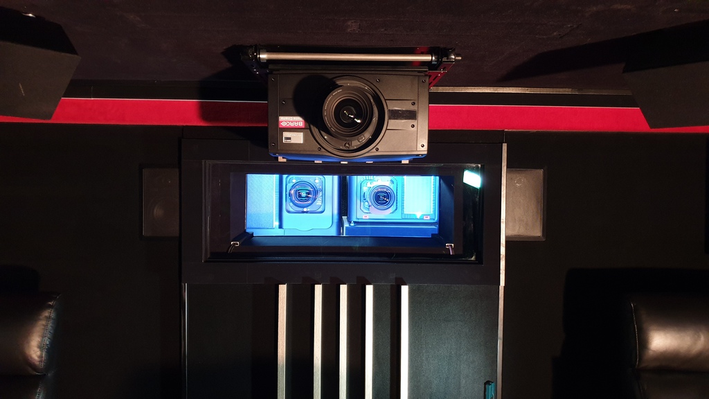 fest installiert und der Dritte, Barco Bragi, ein 1-Chip LED-Projektor im Kinoraum.