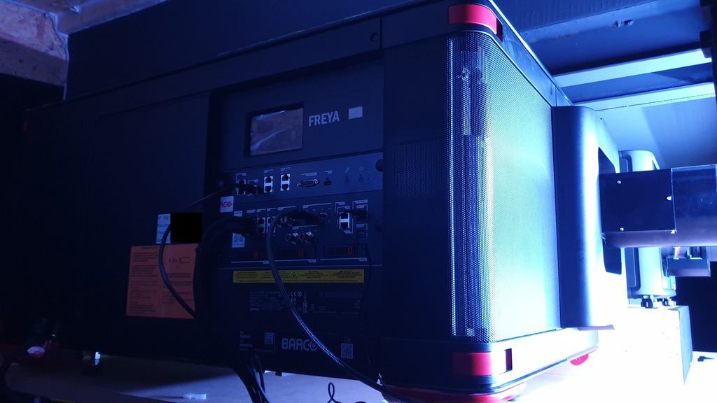 beiden 3-Chip DLP-Projektoren mit Laserlicht, Barco Freya und Barco Hodr, beide im Technikraum