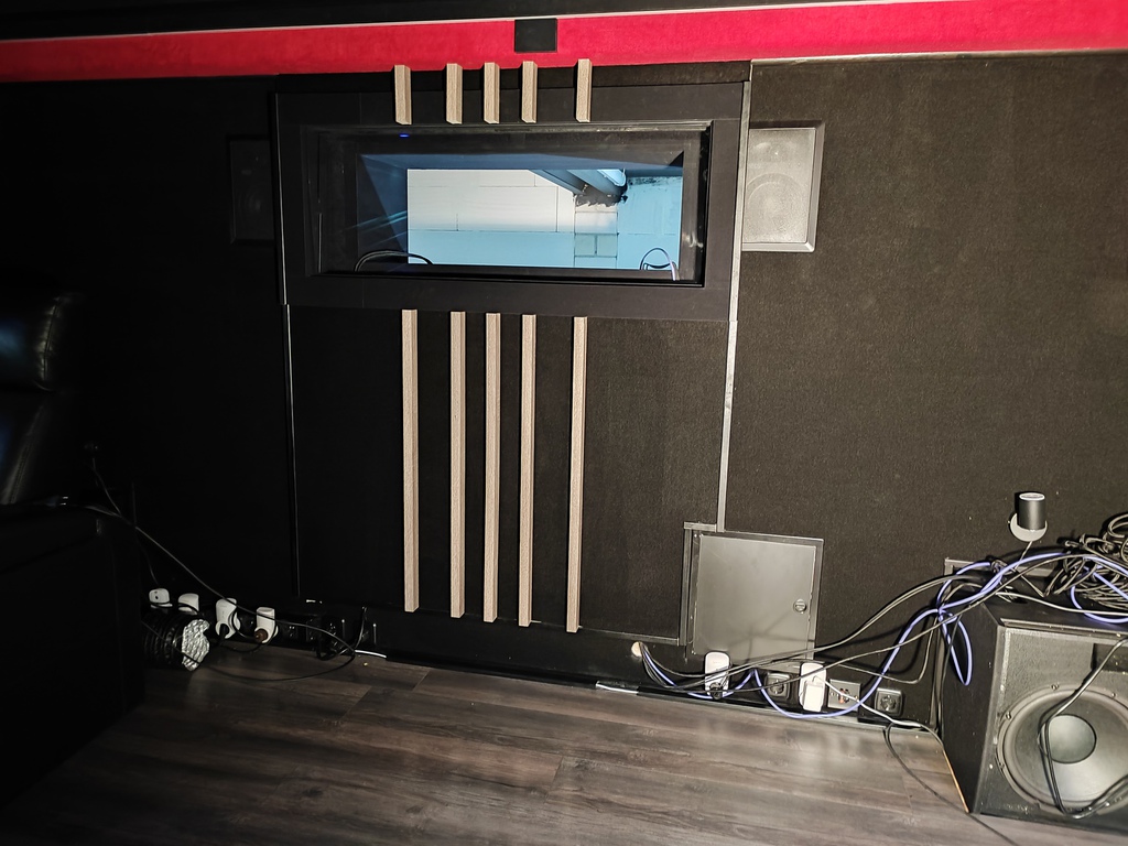 einer Trinnov Altitude 32 akribisch kontrolliert, damit die hinter einer akustisch transparenten, 3,40m